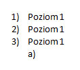 Po naciśnięciu entera po trzeciej linijce pojawia się 4) a my chcemy by pojawił się pierwszy znak drugiego poziomy czyli a)