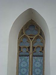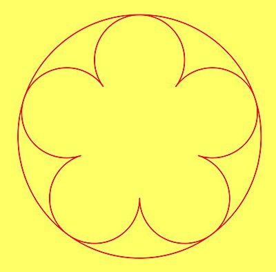 ![]() | Jednak nasz maswerk jest nieco inny. Okrąg jest dużo większy, a wewnętrzne ostrołuki nie mają wspólnej podstawy z ostrołukiem dużym. |